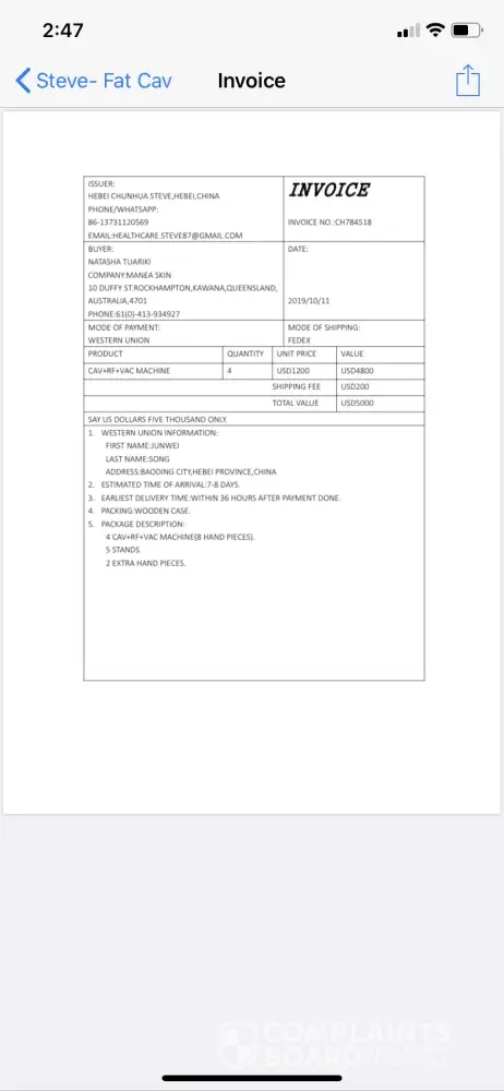 I paid this man $8000 aud for beauty machines and was paid via western union 2 months ago and he took my money