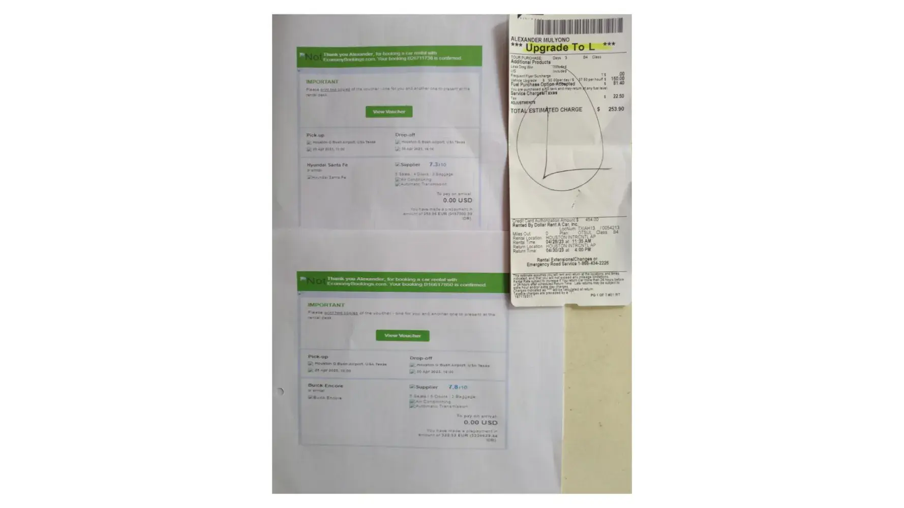 a. the confirmed reservation followed by the voucher we got from EconomyBooking