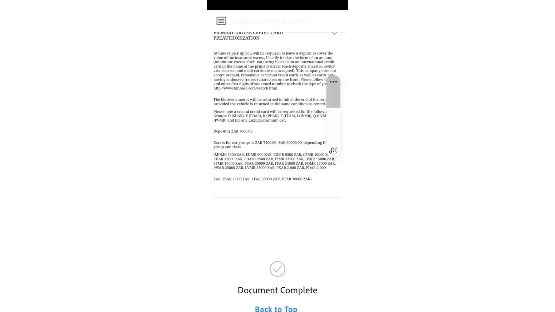 When I boomed this car rental I checked all term and Condition and it stated the pre authorization for this type of car is R7500.00