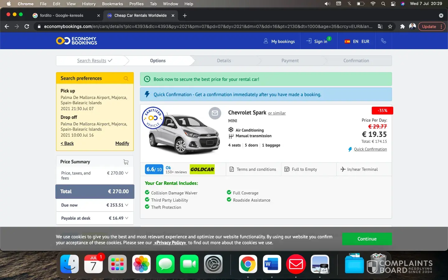 On July 13 th 2021, looking for a car in Florida, I went on the thrifty Car Rental site. For any reason that I do not understand, my research brought me to the site of Economybooking instead of Thrifty Car Rental... so I thought that It was the Thrifty site to book a car for my trip to Florida.
