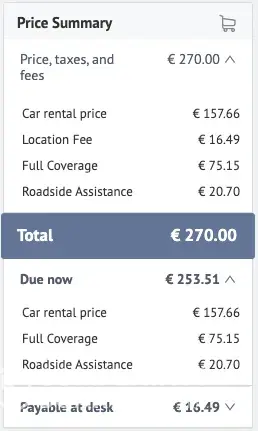 However, once I arrived at the counter of "Goldcar" at the airport (the rental car company), they tell me I have to pay an extra 256 euros for the coverage, which was supposedly included in the price I paid, as the person on the Swiss number told me. After having checked on the website, there was indeed the full insurance coverage+airport fees included in the price I paid. The lady of the rental car company said that I still had to pay the extra 256 euros no matter what.