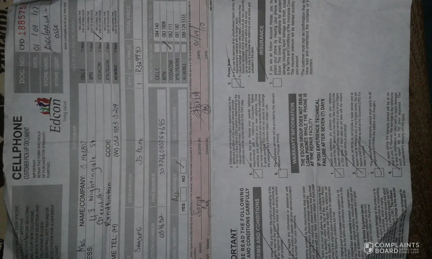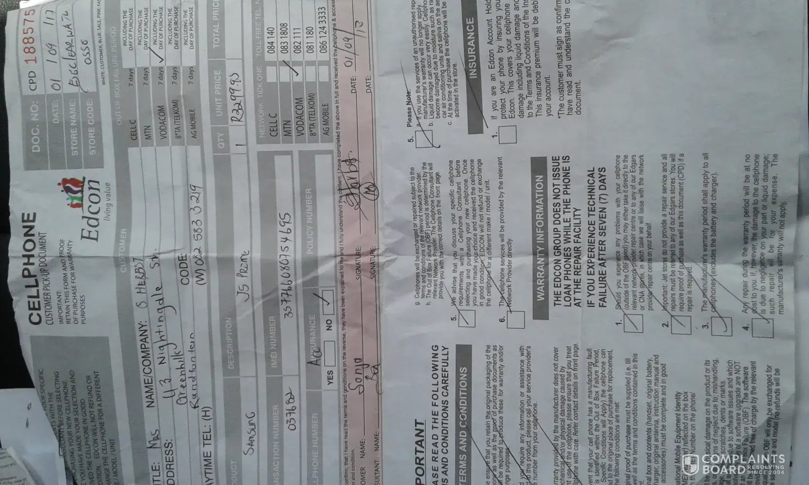 Edgars Fashion / Edcon cell phone insurance