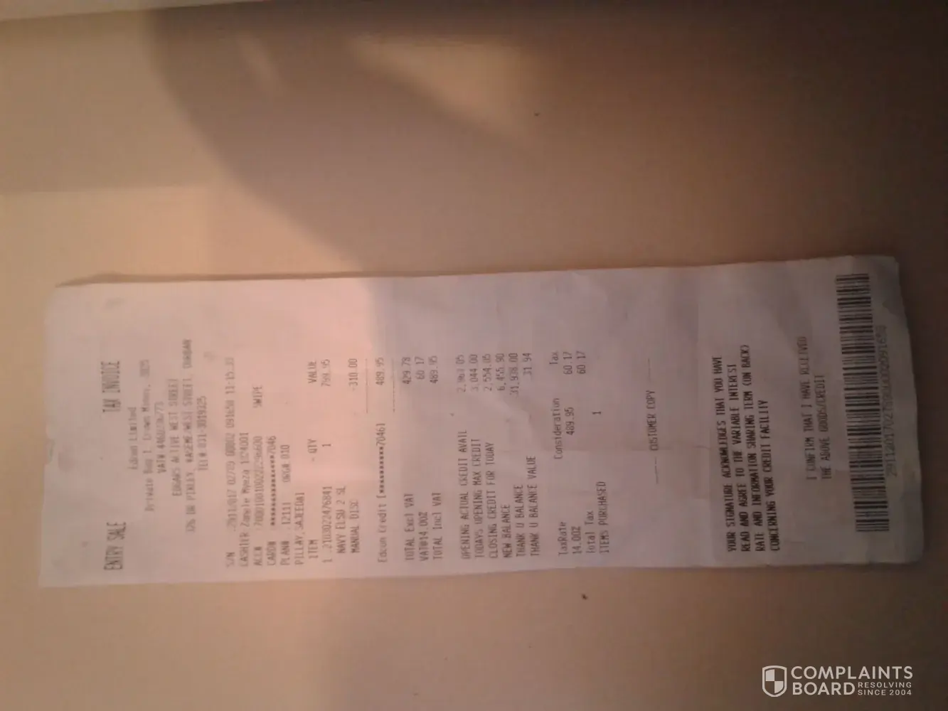 Verified customer This complaint was posted by a verified customer. Learn more