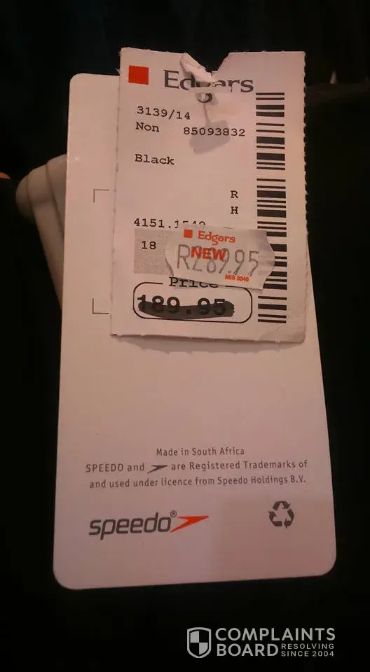 Went to Edgars at Weskus all Vredenburg to see the sale items you have been advertising and much to mu disgust there was a sale item for R289.95 and beneath the original price was R189 95, , , , so where does the sale item come in if the original price before sale was R189.95...and you mark it up by R100 and tell everyone this is the sale price. Really I think that is so disgusting for a shop your size to do in the public like that. What explanation have you got for this.