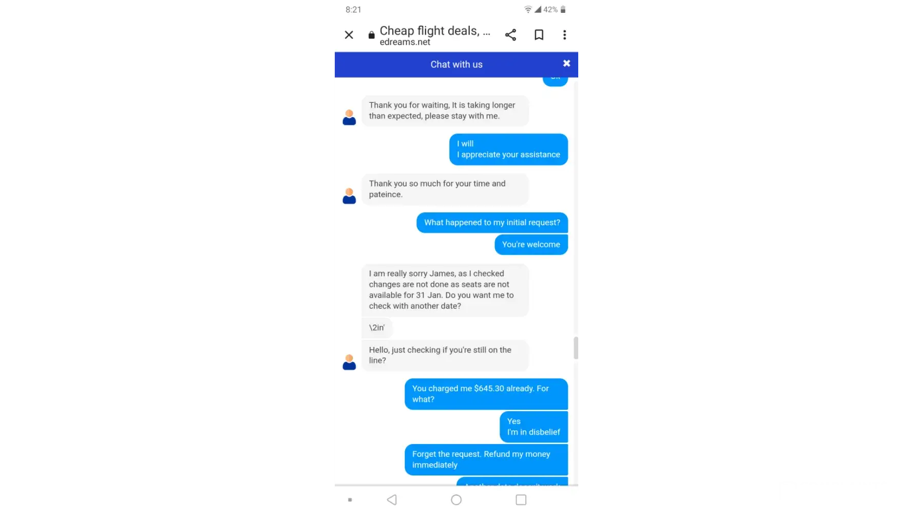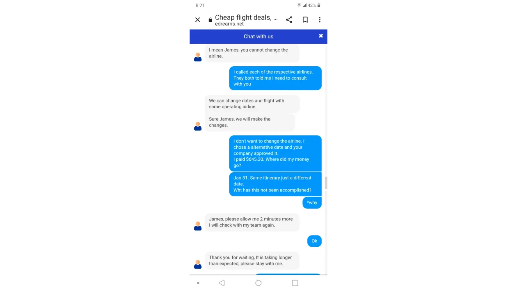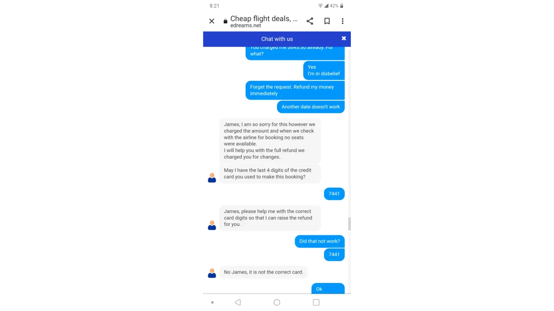 I spend another hour on the Edreams app trying to get it to understand my problem.