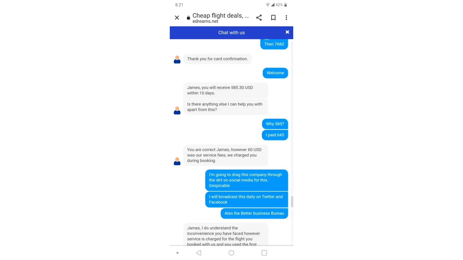 If this is an edreams representative seeing this, you can contact me VIA: