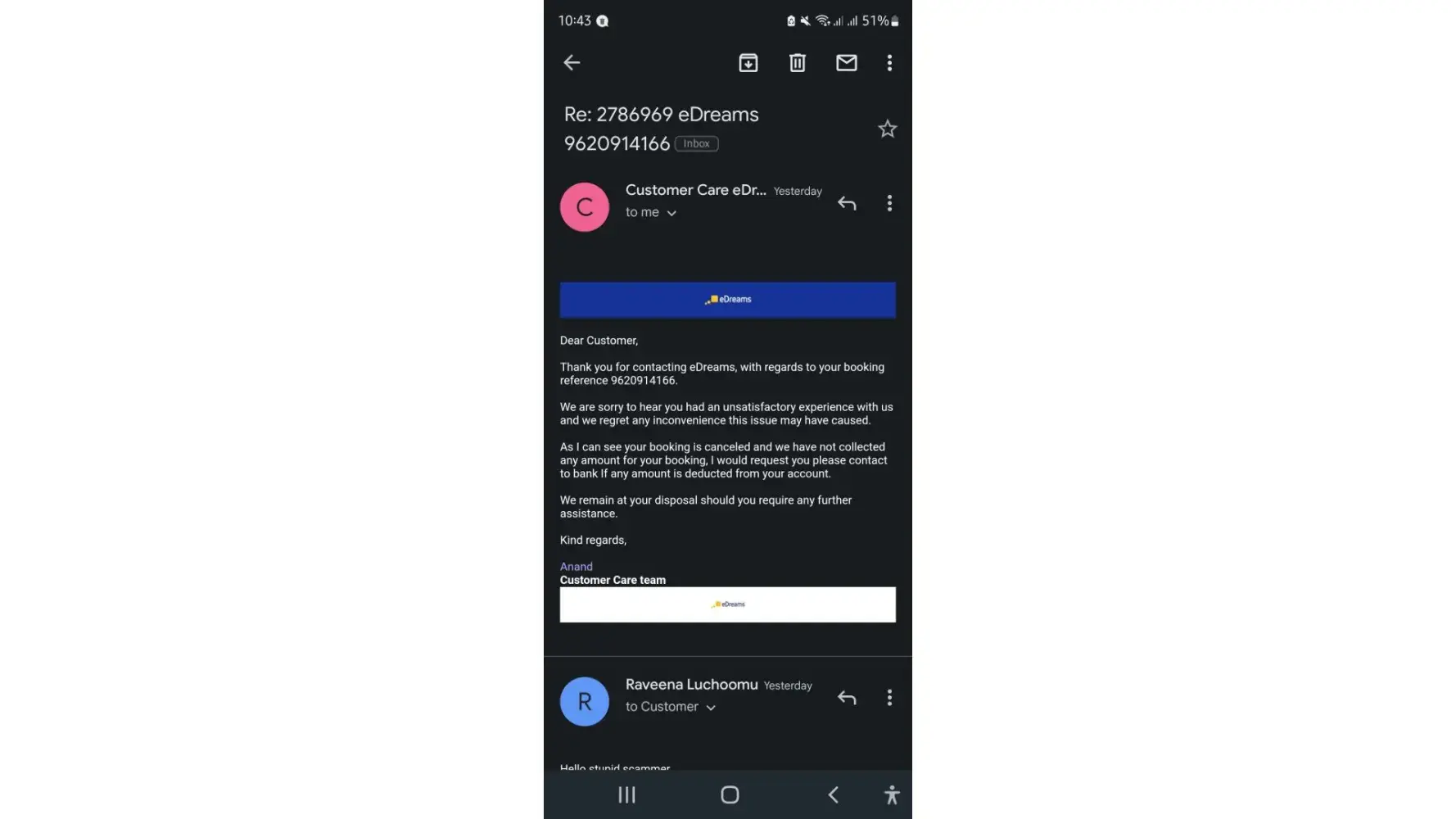 Did anyone solve problem with edreams? I have print screens of our communications.