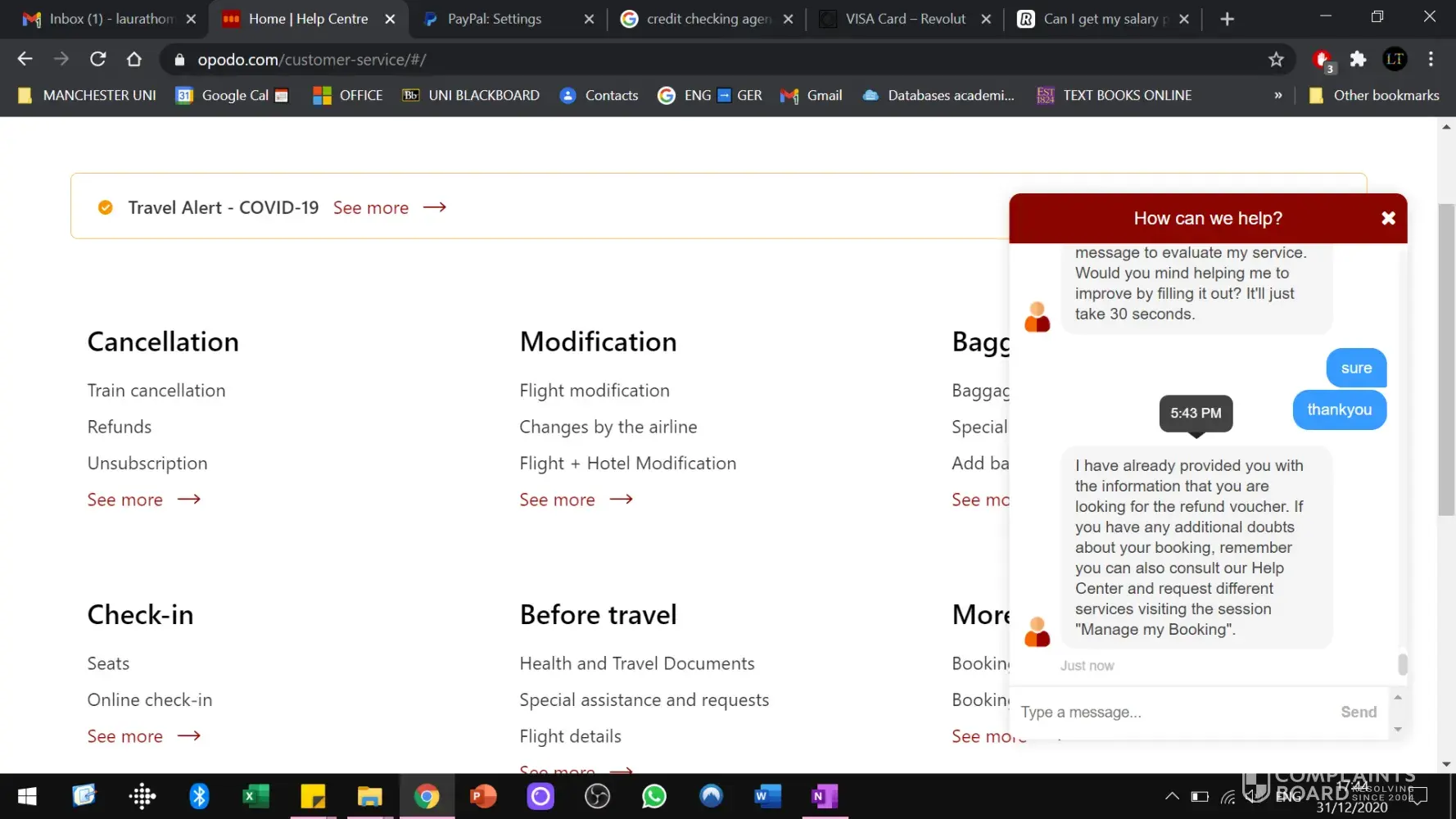 Opodo unable to change flight in time staff, lying saying that I was eligible for a voucher/ refund