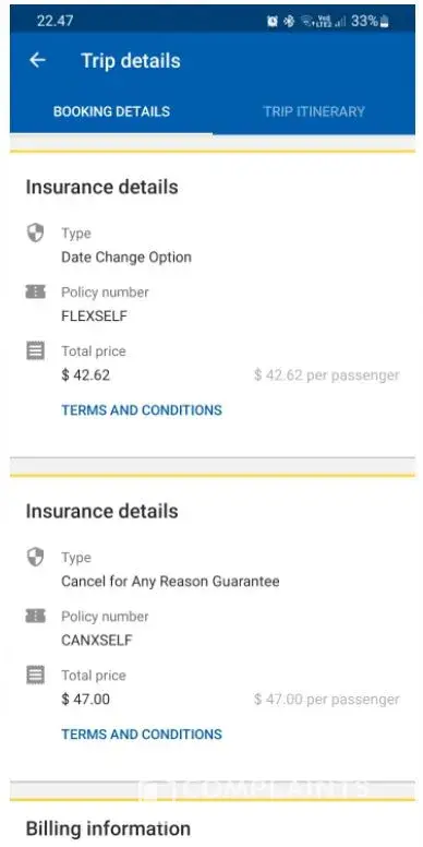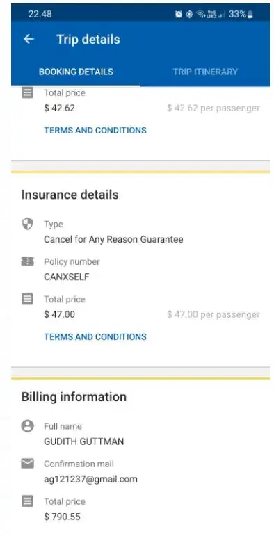 We already purchased a full cancellation policy (extra services) such as “Cancel for any reason guarantee†(added 47 US dollars) and “Date change option†(added 42.62 US dollars)