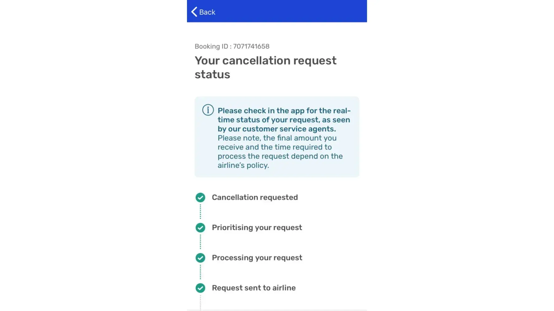 Desired outcome: full Refund for 2nd booking