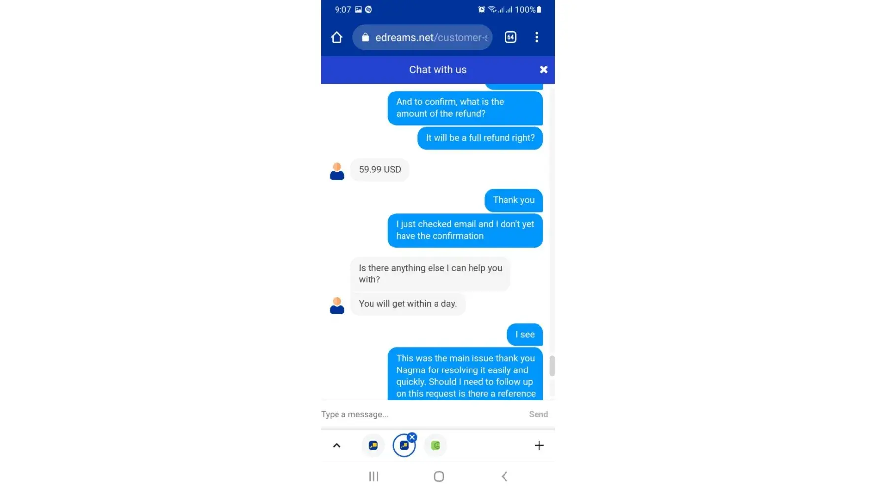 The last time i chatted with eDreams through their app was last week - on 2022-04-09 i think.