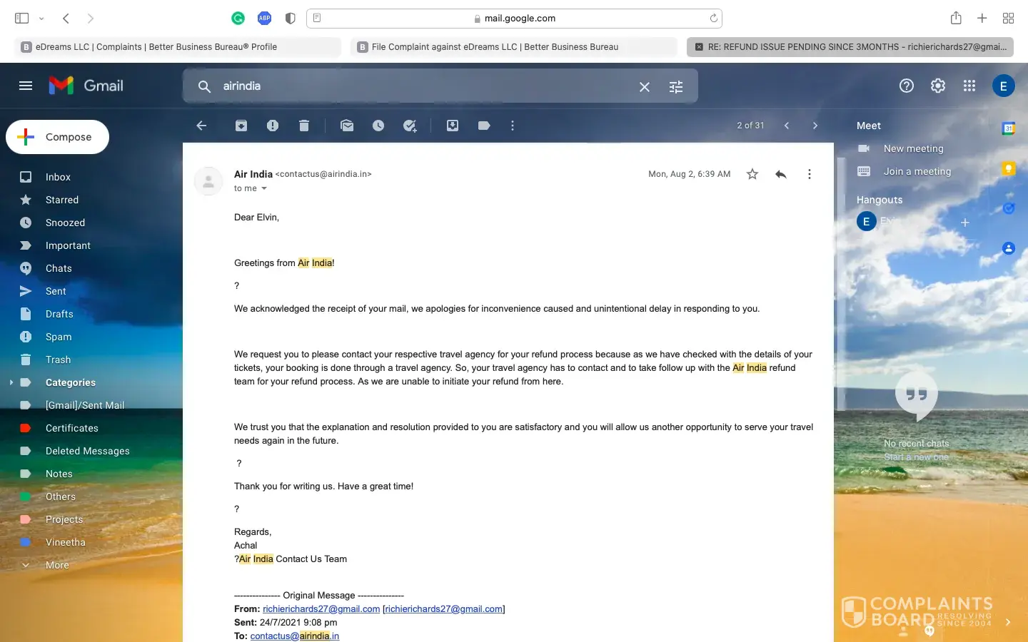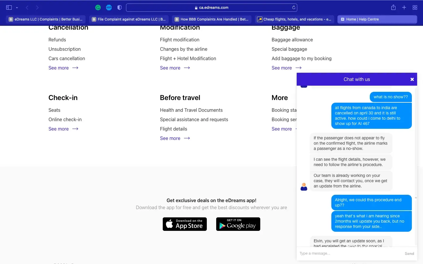 13 October, called eDreams, spoke with Aastha. She says will ‘escalate' the matter. Says wait 48 hours. Says they will call me.