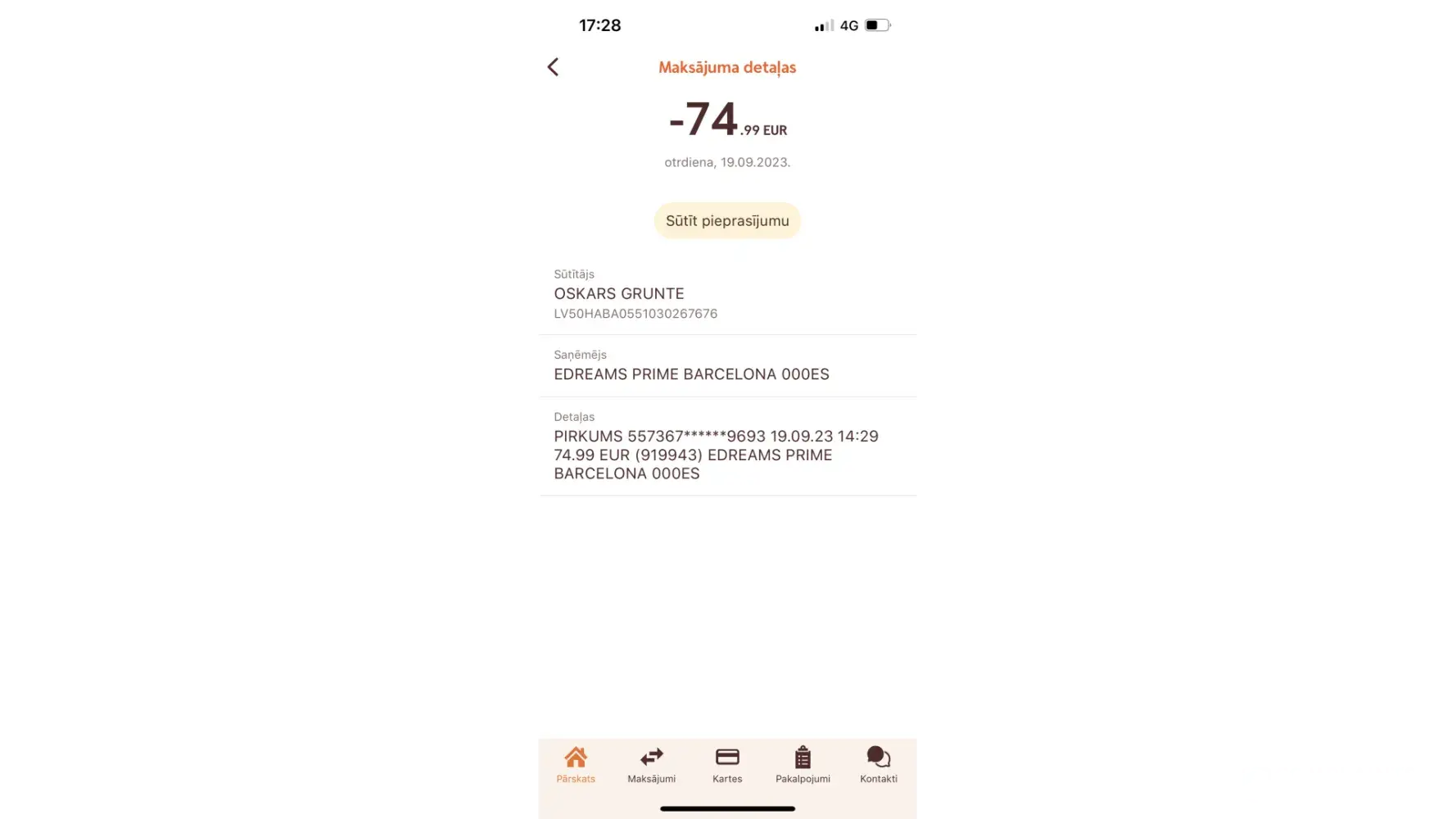 Today morning (September 19, 2023) I was charged 74.99 Euros from my card