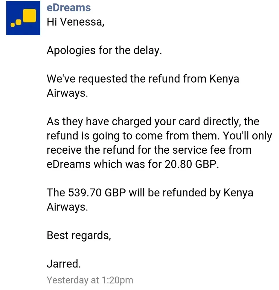 Airline told only Edreams can refund you.