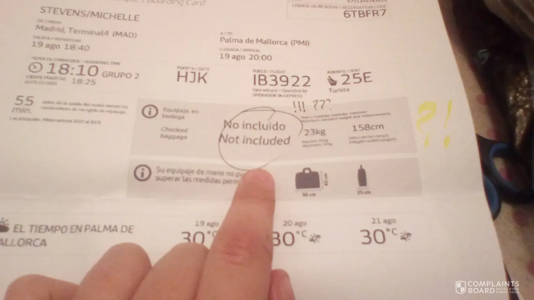 unresolved luggage error. booking reference