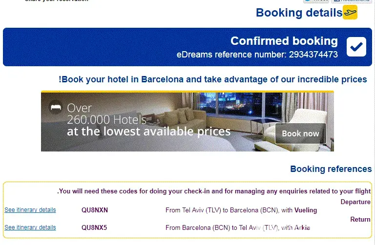 I will not order anything from eDreams company, and I will recommend people to try another agencies.