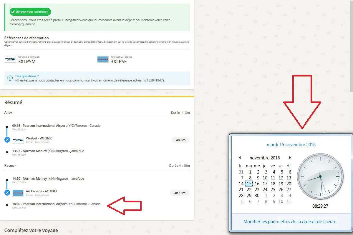 I have asked a refund of both flights (The one from toronto to kingston and kingston to toronto) since I couldn't travel because of their modifications. Edreams doesn't want me to refund me the first flight and they told me they gonna refund me the flight back after 3 months how is that possible? I complaint first because they didn't advise me properly of the modification (the email was in my spam the subject of the email was my name nothing says the flight has been modified just the date is different). Second because they don't agree the refund me the totality of the amount. Third they have a customer service really bad they are lying to you that's incredible.