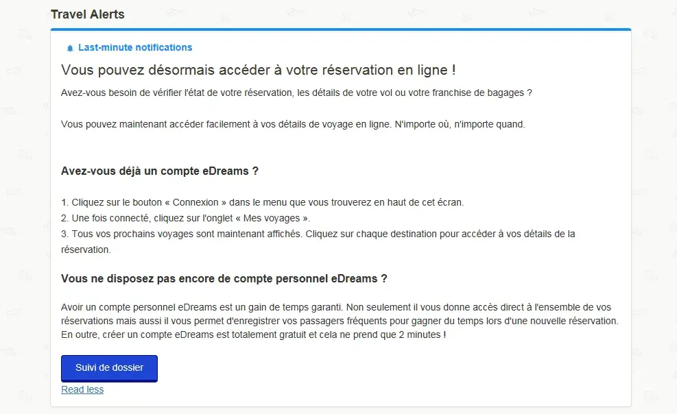 I am seriously very disappointed with Edreams and I am considering asking to be refunded. No way to get an answer from them.