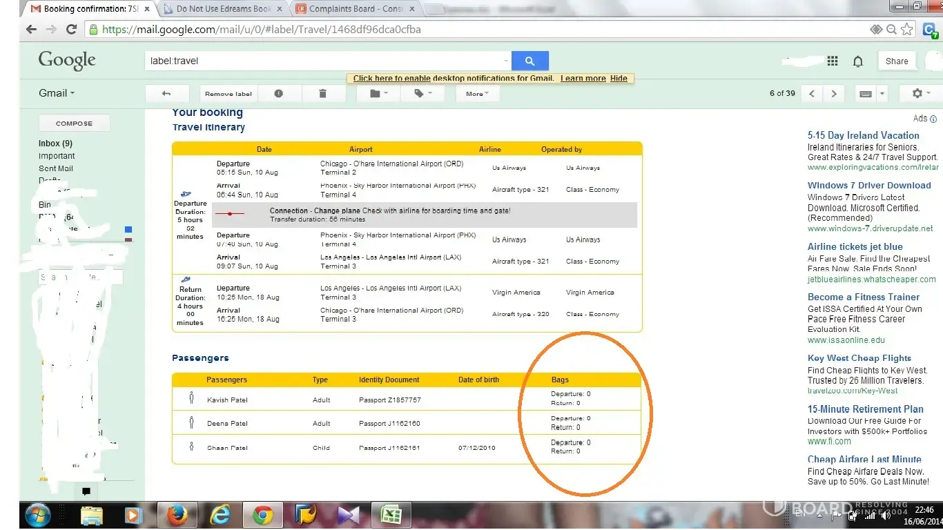 I made a booking on 11th June 2014 from Chicago to LA and return. Firstly, while booking the website clearly mentioned