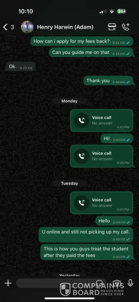 I paid my fees abound 1 and half month ago and the relationship manager informed me $400. Then he told me $600. But I only pay $400. After paying my fees without attaining any lectures I asked for fees return but no one responding. They promised me a batch with particular faculty at particular time. They lied to me about that. Then they not assigned any...
