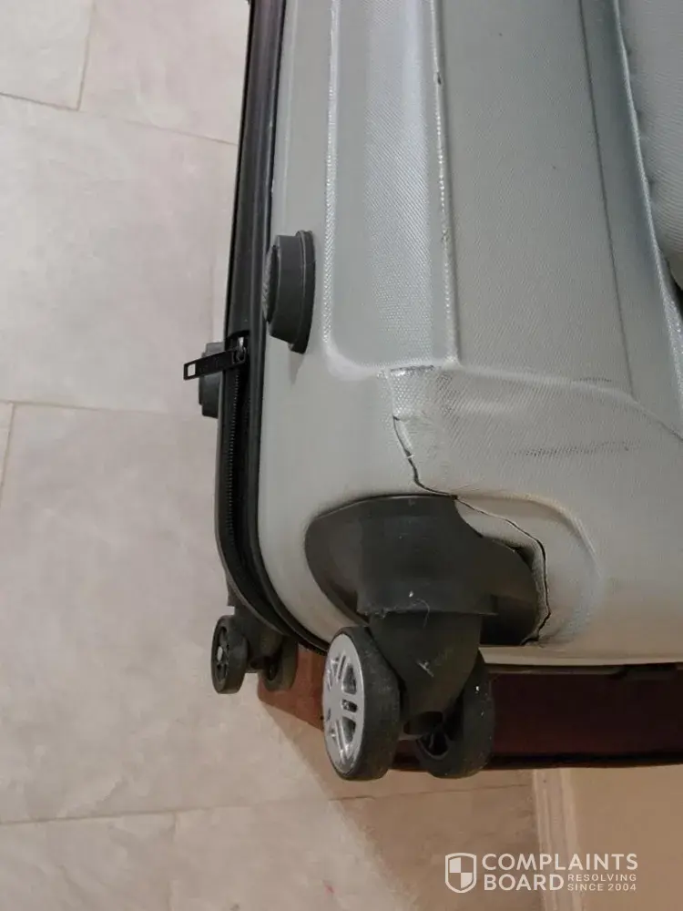 Desired outcome: I would like my money for the damaged luggage.