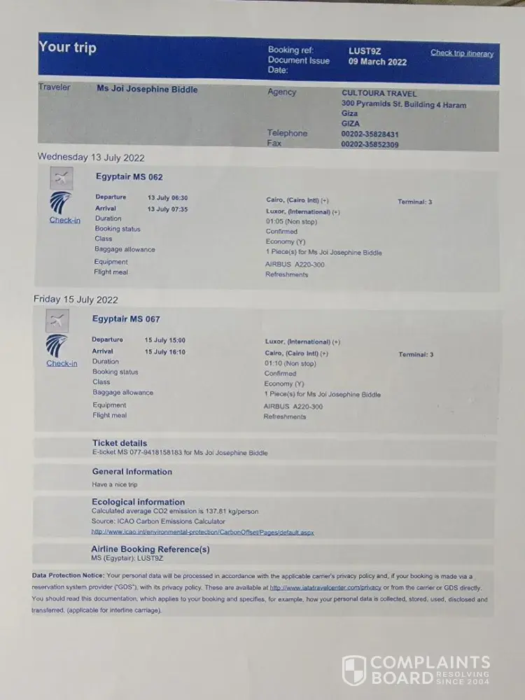 Egypt Airlines / EgyptAir complaints: history and resolution overview
