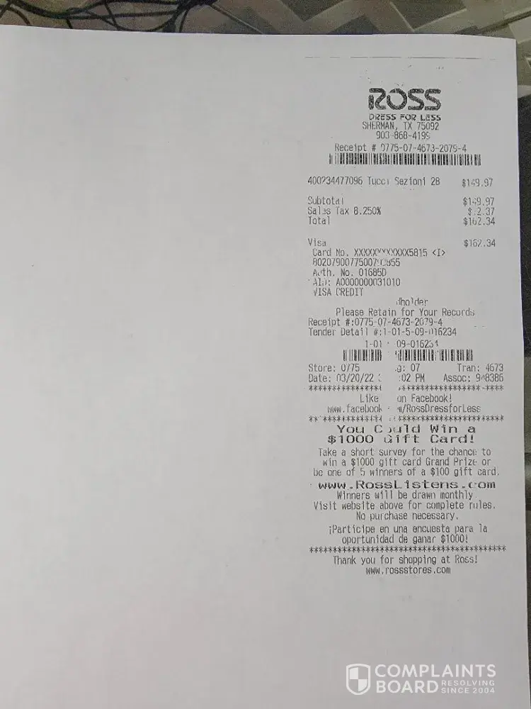 Verified customer This complaint was posted by a verified customer. Learn more