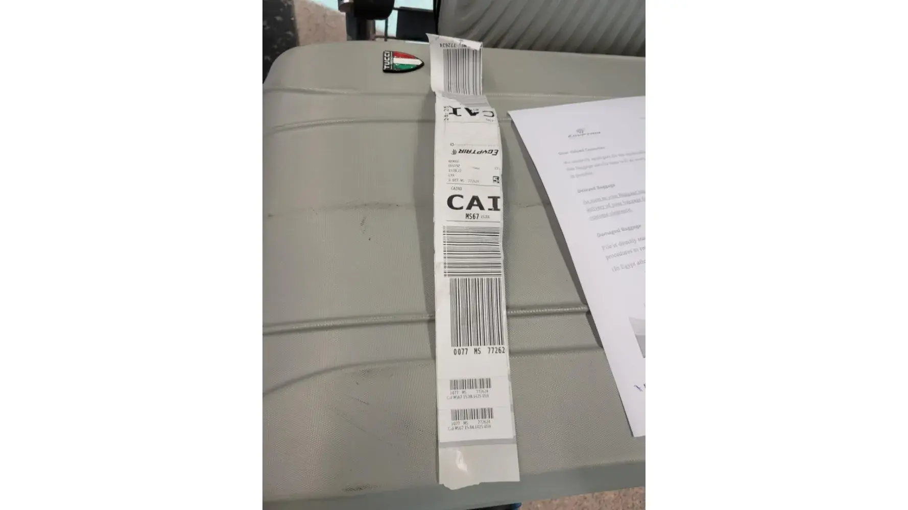 On the 15 of July 2022, on my return from Luxor to Cairo, my luggage was damaged, as our assistant from Cultura Travel retrieved the luggage the damage was immediately seen and we went to the counter and filed the claim for damaged luggage.