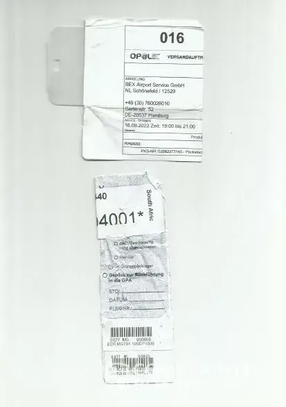 scan copy of baggage tag(s)