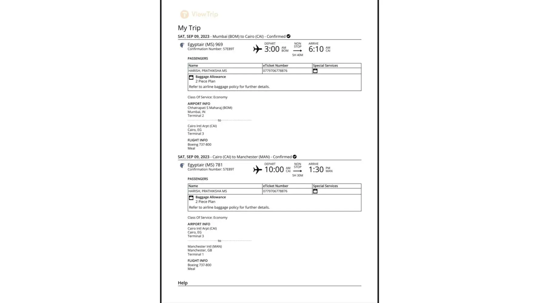 I had a connecting flight on 28/11/2022 from Jeddah to Cairo and then from Cairo to London Heathrow. Ticket Number: [protected]