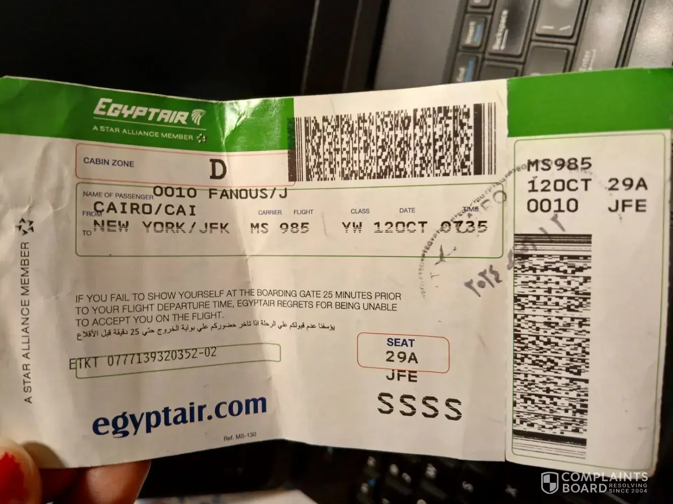 Most discussed Egypt Airlines / EgyptAir complaints