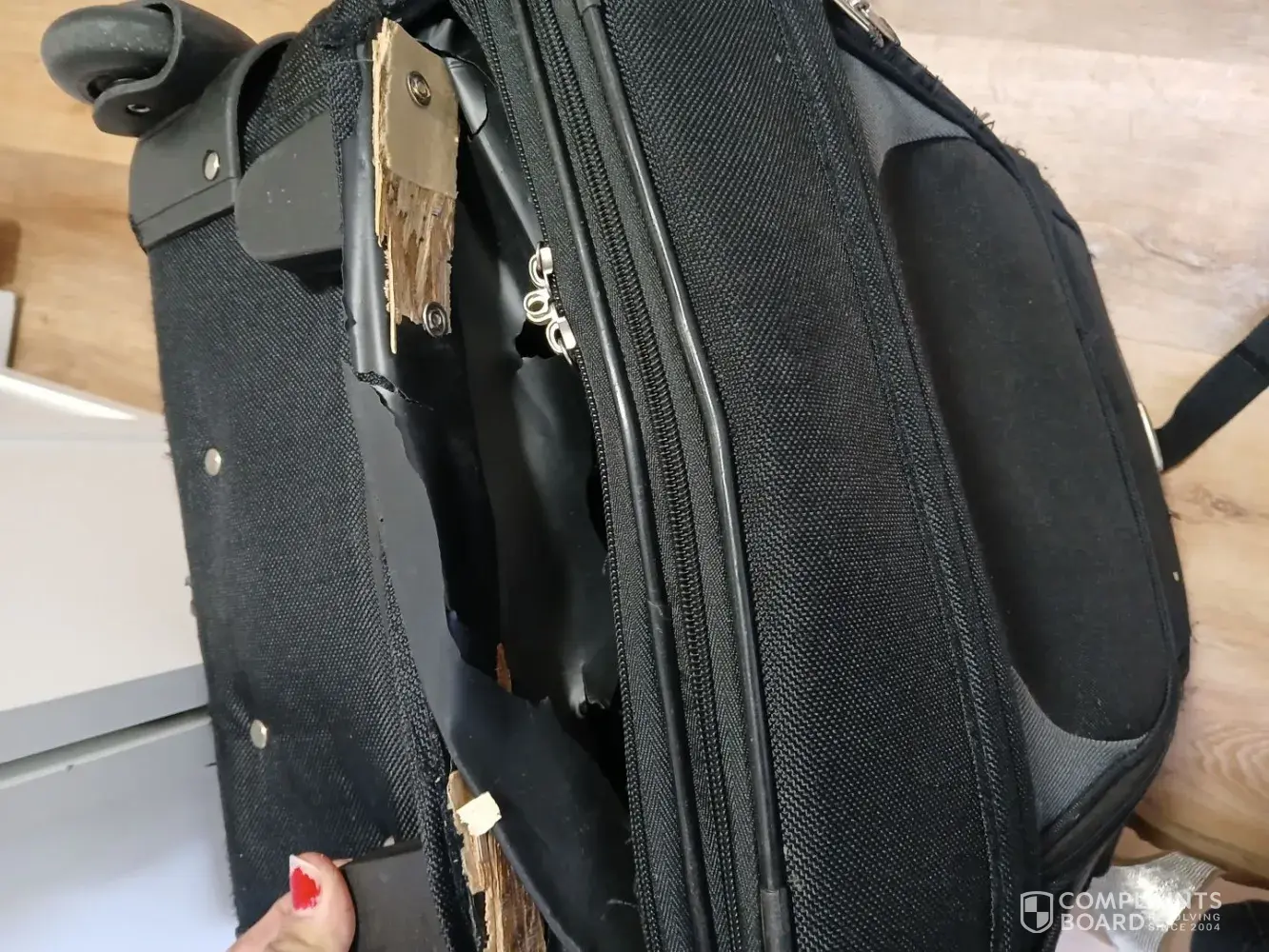 I am requesting compensation for my damaged travel system we booked in as cabin luggage (before we got up the plane)