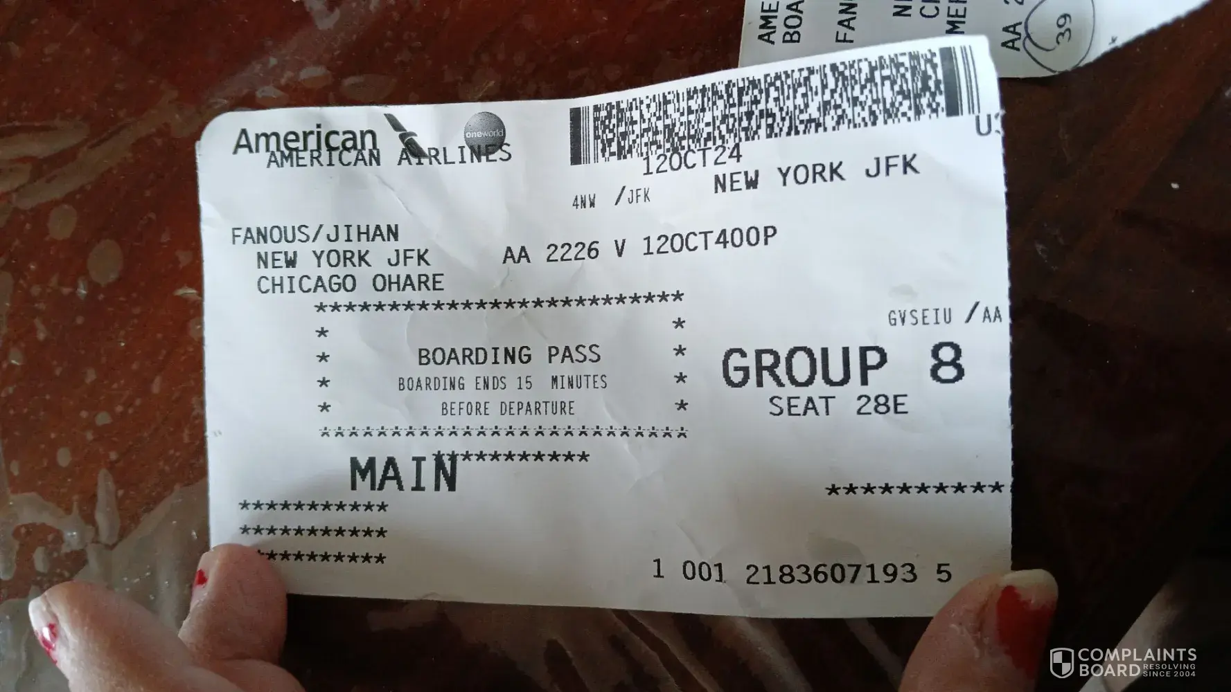 security guard. I asked him to bring the Duty Manager. It is clear this person went away and did nothing. At about 11.20 a.m. three people from Egypt Air came back to the lounge. Again, there was no information given. I took a picture of them as a matter of record and immediately received threats