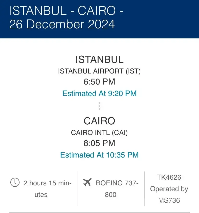 VERY UPSET! Our flight from Munich to Istanbul went as scheduled but when we got to Istanbul we found out by coincidence - no email no sms - that the connecting flight to Cairo was almost 3 hours delayed - no apologies offered from anyone. Nothing offered! Not only did we miss our private transfer in Cairo but also missed some important appointment as we...