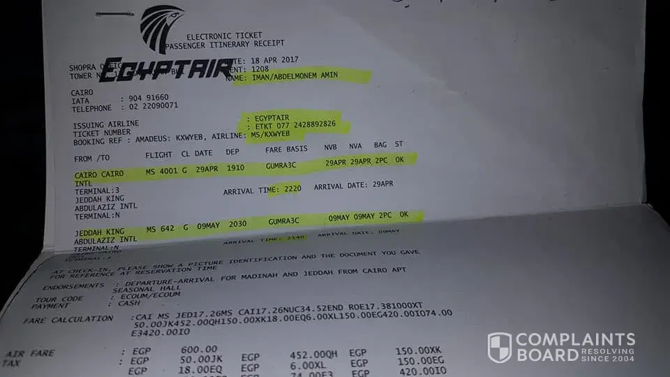 Egypt Airlines / EgyptAir Complaints Page 3 of 6