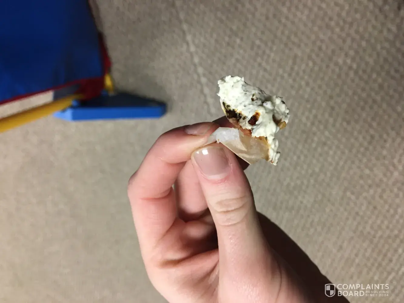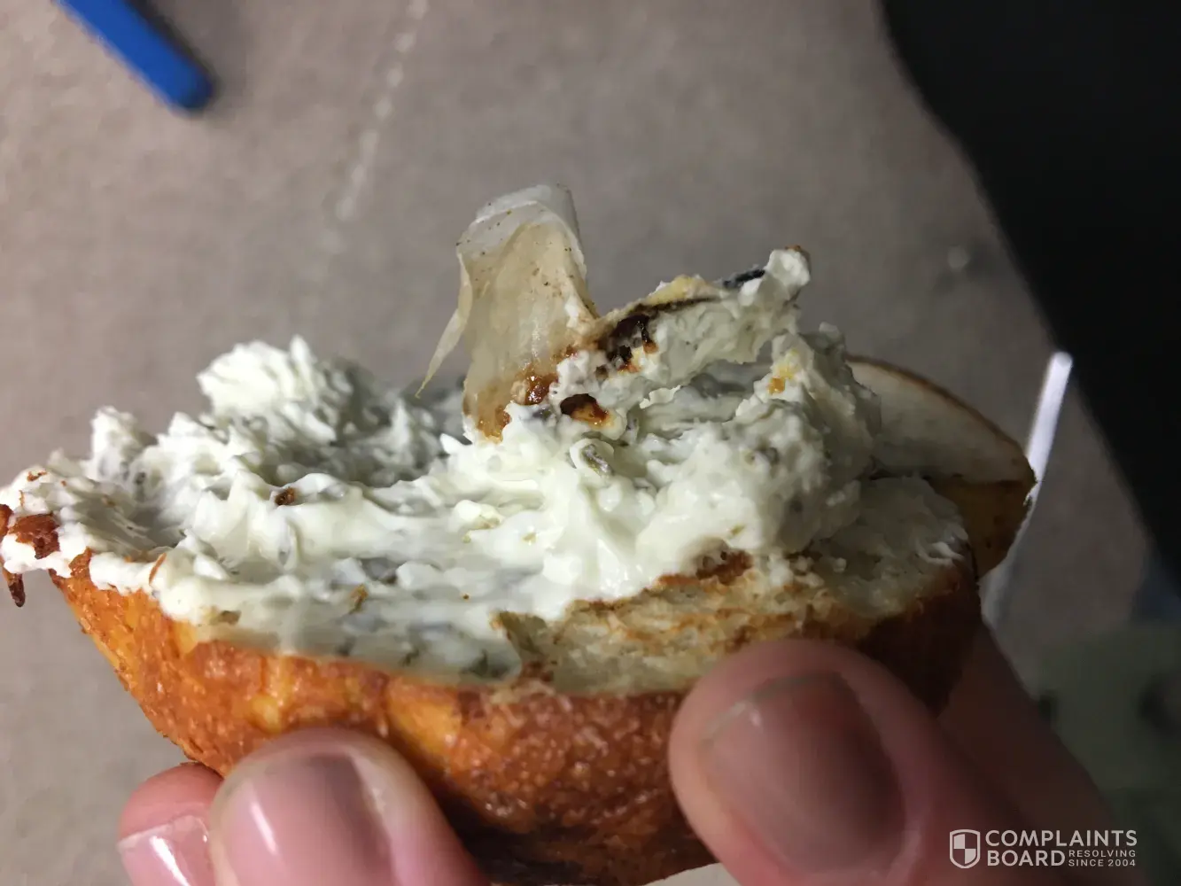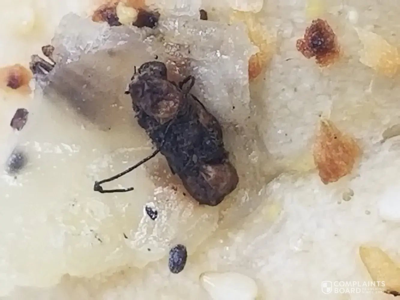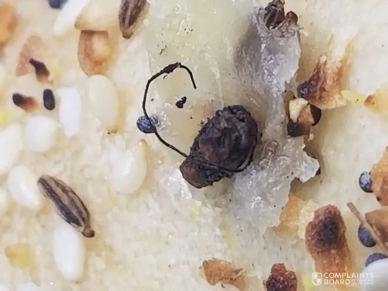 Today 6/28/17, this morning, I stopped by at the Einstein Bagels for a coffee and my usual sandwich Spinach, mushroom and swiss on an everything bagel. I came to my office to have my breakfast, I had the first half and when I bit into the second I noticed something that was sticking out on top of my bagel (looks like a bug with a hair on it) I immediately started throwing up.