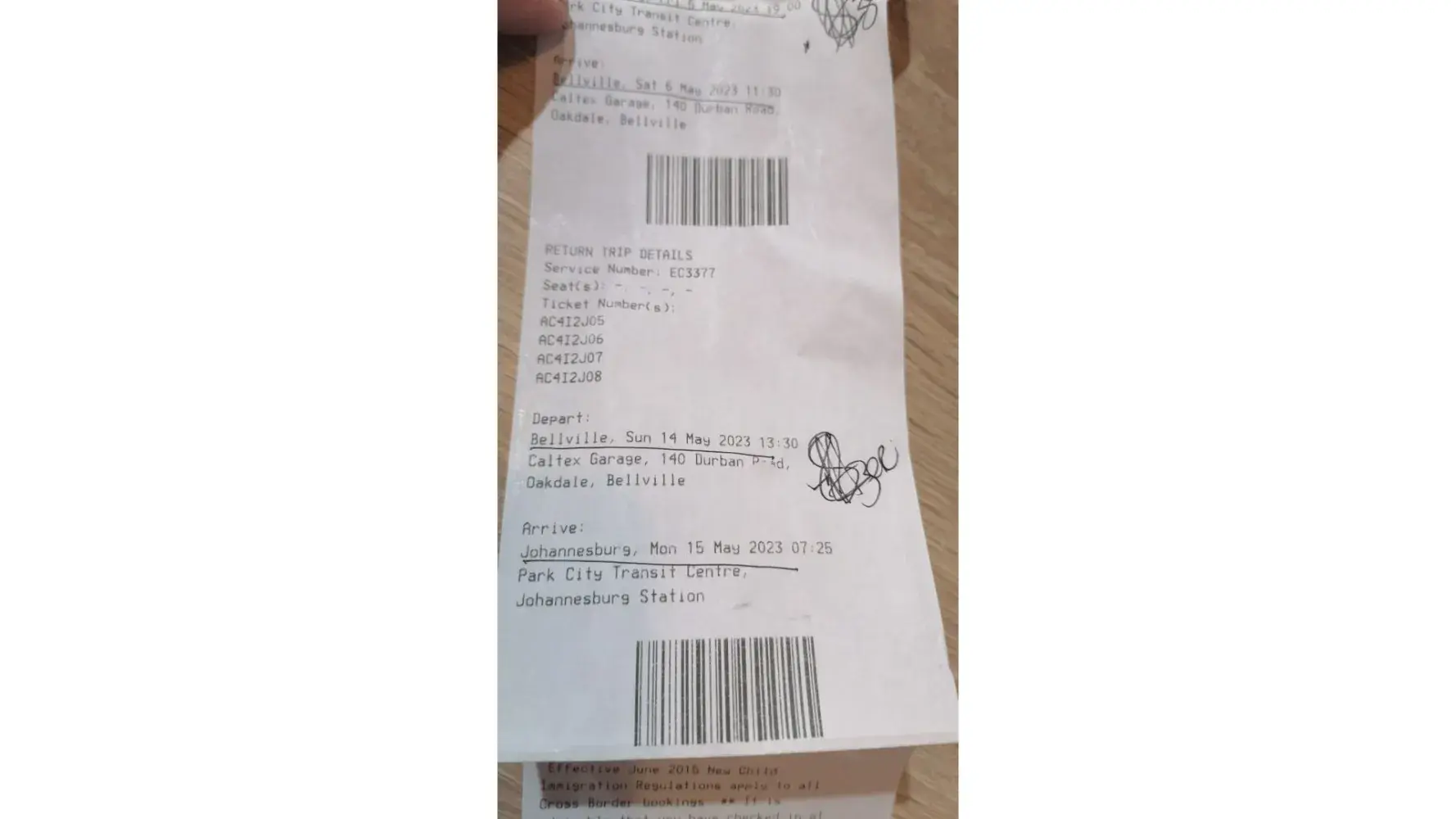 On 12 May 2023 I was traveling from Cape Town To Johannesburg using 13:30 bus