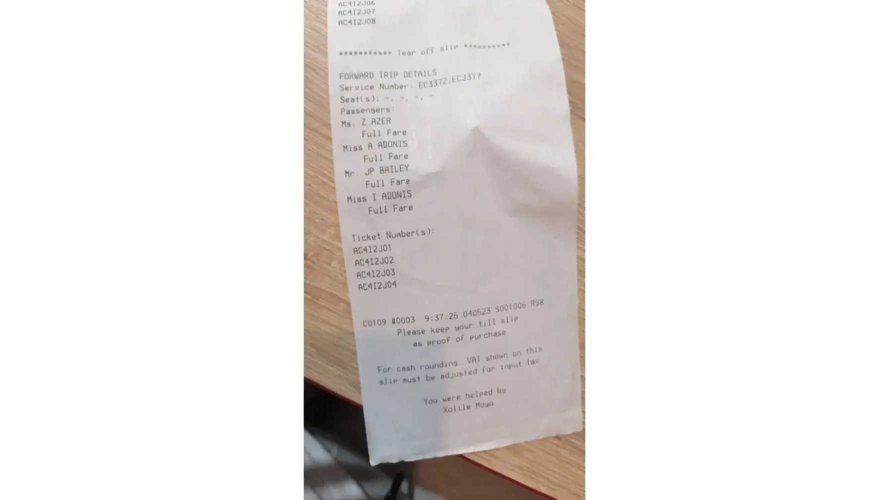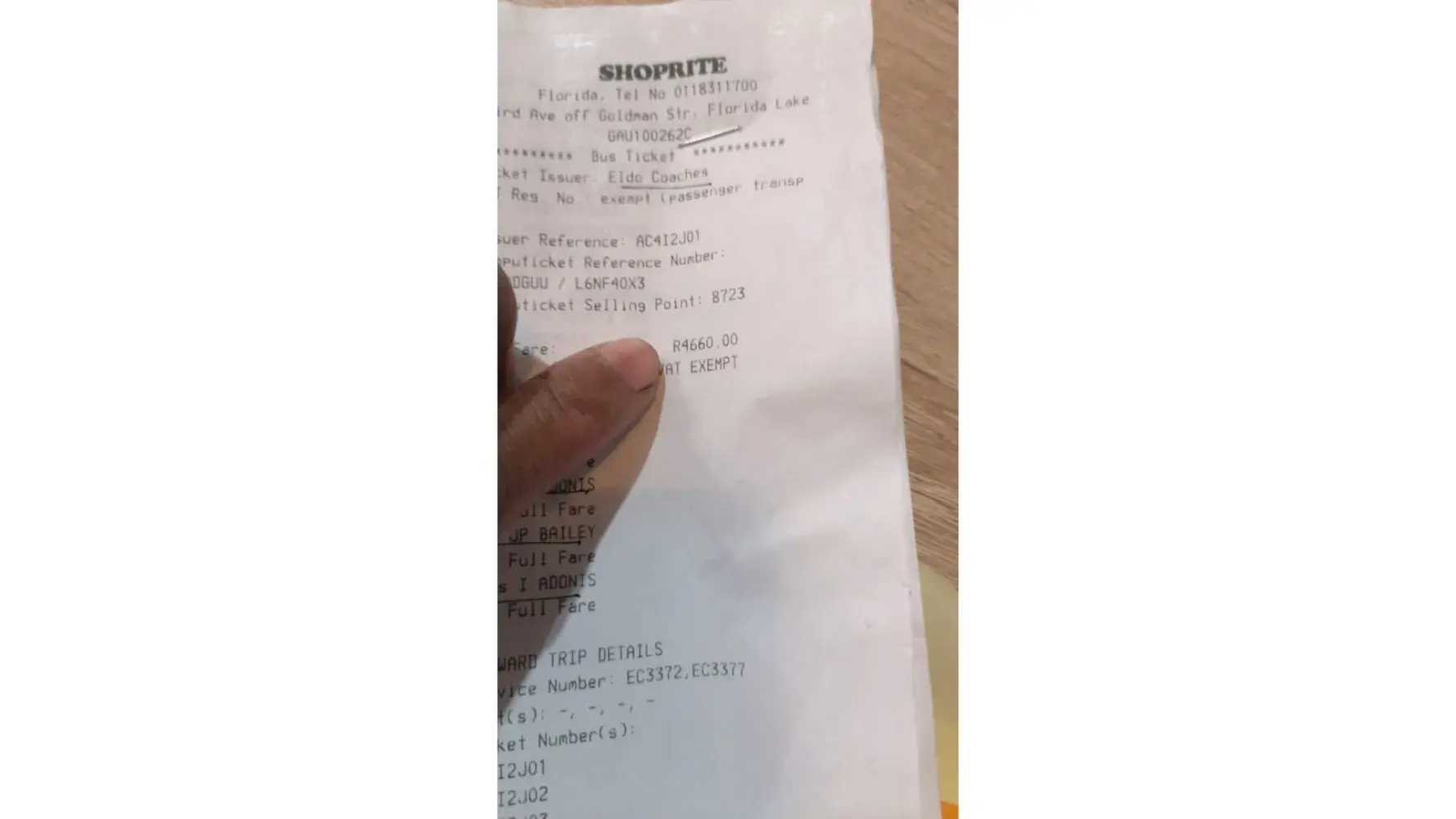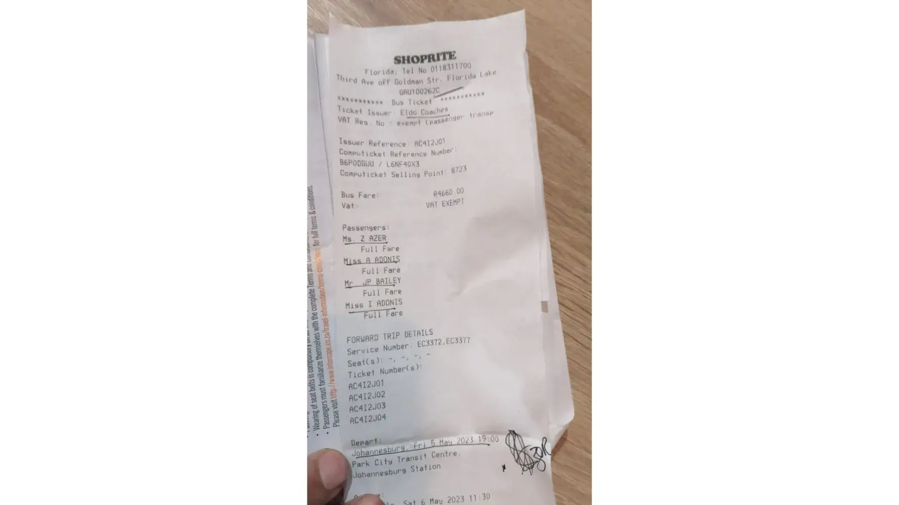 The ticket was bought at the African Link offices at the corner of Commercial and Burger Street. The staff wwas friendly and helpful.