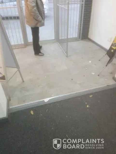 7. The front reception is filthy and was not swept