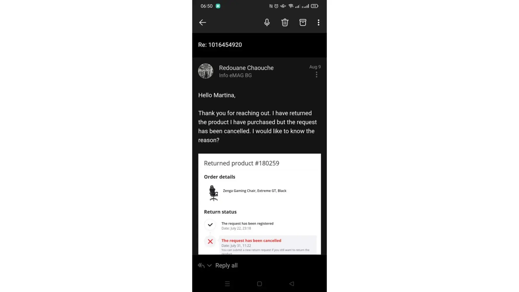 eMag’s earns a 1.0-star rating from 1 reviews and 1 complaints, showing that the majority of customers are dissatisfied with their purchases.
