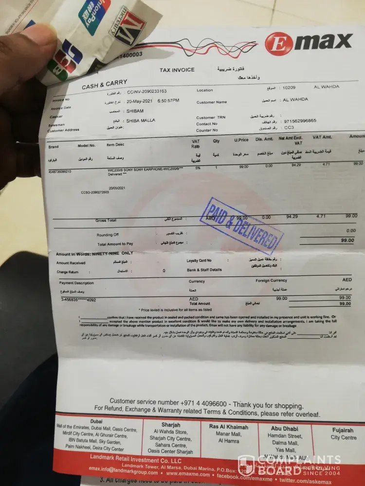 Purchased Sony TV KD55X80J 55 inches from Emax Mirdif on 14th Aug and requested for a delivery on 17th Aug. But they didn't keep their word and without any update delivered on 18th Aug evening. Hardly it worked for 1 hour and then no visual only sound comes. Next day called Emax customer care at as they only work BTW 10 to 7 and raised my concern/complaint. Person over the phone promise to send technician immediately as its new TV, which made us feel good for the kind of service. But being money spend on TV we decided to go to Emax store and discuss and to our surprise they clearly ignored to take responsibility and said TV is delivered by Jumbo and they are dealer we cannot do anything follow up with them. (Did I pay to Jumbo or emax to get this kind of service)