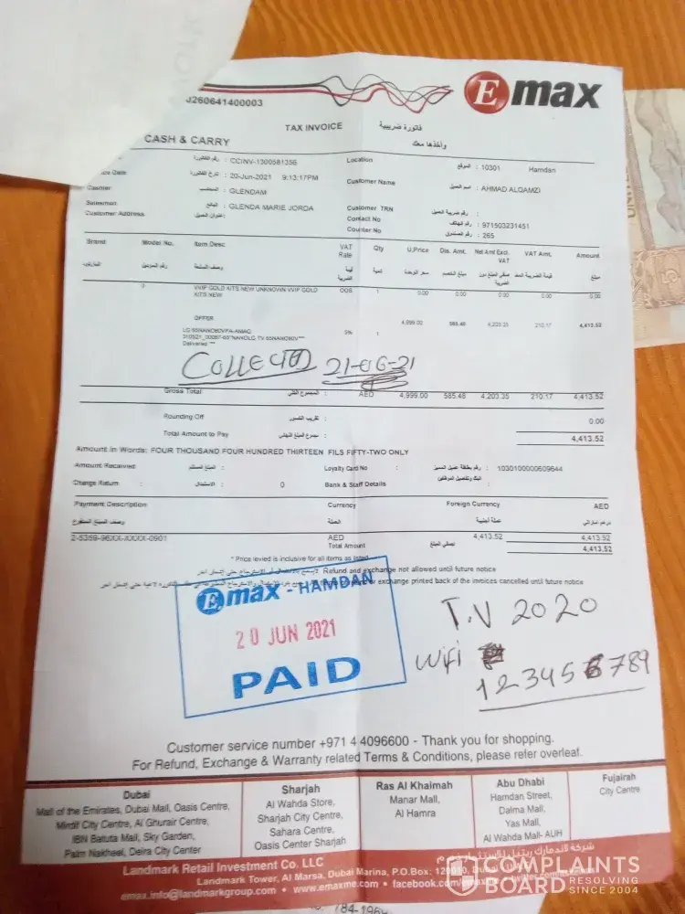 Emax / Max Electronics TV I purchased from Emax Mirdif Store.