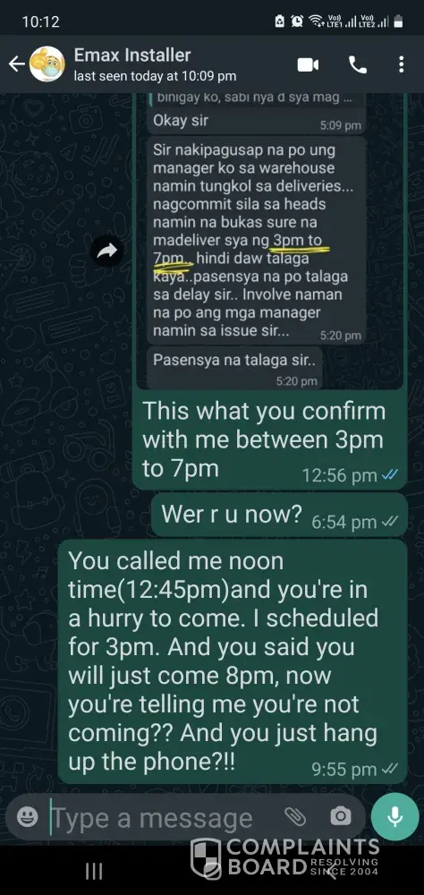 We got our Chairman's club membership which has the same day delivery option. But they says its holiday the next day, so we are being considerable. But the 3rd day the delivery guy says he can come in the morning time, so we waited till night, just to found out that he is not coming. It will be for the next day delivery, but next day came, I called the guy he says he is not going to install, there is another guy. I request for 3pm because of my work timing. The delivery guy called 1245pm and says I need to be at home in 40mins or he will come at 8pm. And 8pm came till 10:10pm no one came. I called the guy he says he's not coming, call call center. +[protected] this is his number, he's arrogant too. I need explanation for this painful experience, after all our excitement of waiting for 3-4days. Thanks