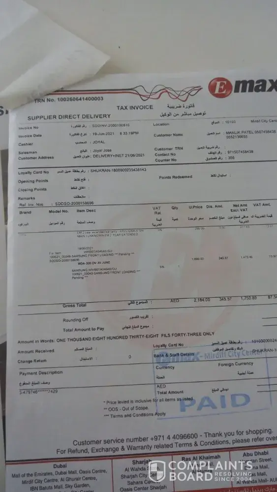 I have got from Emax Yas mall a dryer machine brand wirhpol next day I have called to complain about this dryer requesting for an exchange for a better one, they did not accept it since the dryer doesn't have manufacturing damage however client is very unhappy this is not the first time last time one year back I have got a Samsung fridge which from day one is making so many rare noises the feedback from emax was the same conclusion emax has lost a customer!