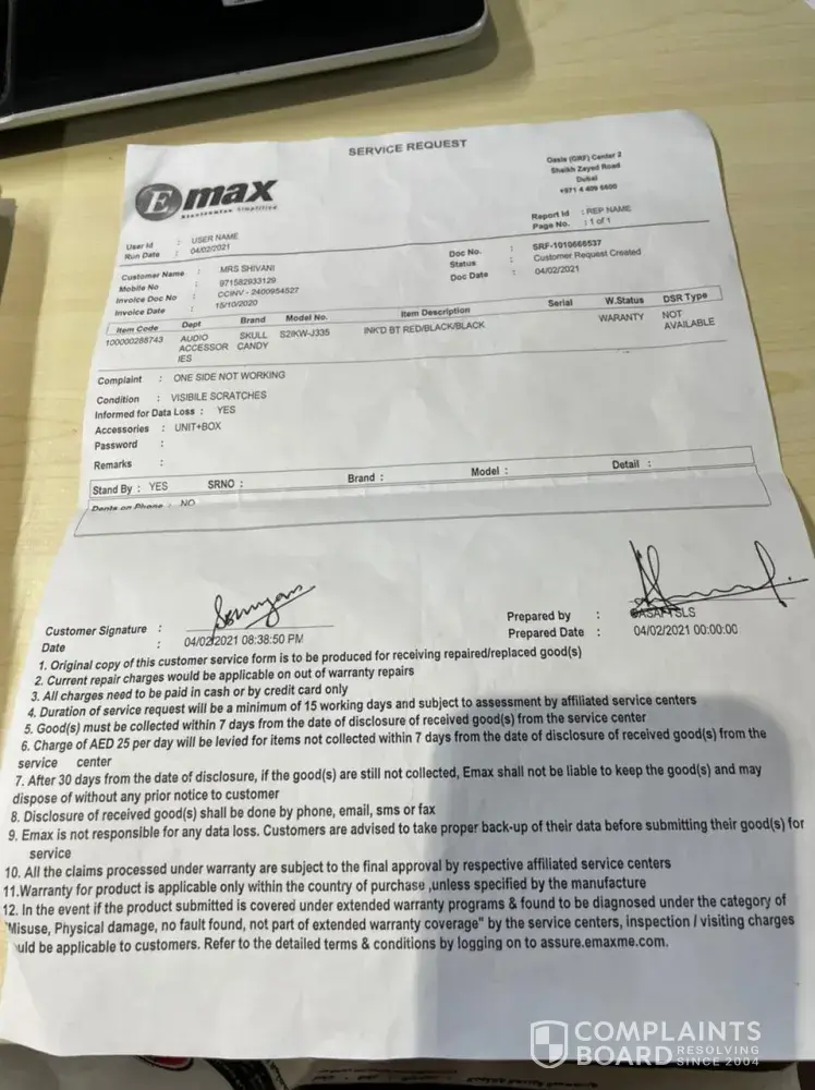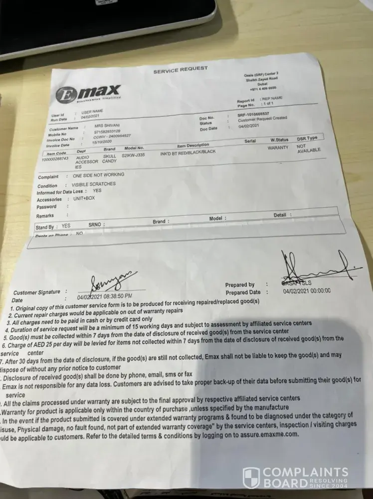 This is regarding Emax Oasis mall, I visited their customer service section on 04/02/2021 regarding some issues in my Skullcandy Earphones, which is still under warranty period. The staff told me that I would be contacted by their staff regarding my complaint in two working days, as per the SOP. Since it belongs to a Well - known LANDMARK GROUP, which has a high reputation in UAE. I was surprised to see that there was no contact from their side and also I kept on calling them every alternate day, but the response which I got was - "We will get back to you". I have not seen this kind of poor customer service in LANDMARK GROUP. Because they value their customers. Today i.e. 22/02/2021, its been more than 2 weeks now, when I called them they told me to go to Emax Oasis mall and collect my credit Note, which I believe was their responsibility to inform me. I would like to say that Training must be given time to time in order to avoid these kind of situation and to avoid any kind of inconvenience to the Loyal Customers. Kindly look into the matter and I hope that nobody else faces this kind of Pathetic Services from the Emax.