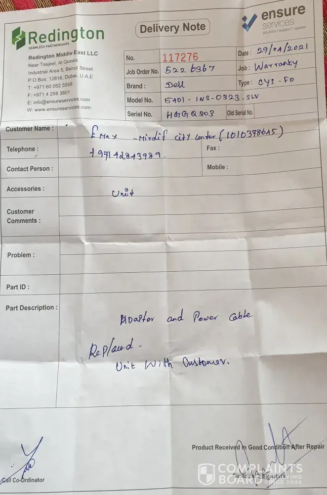 Four months back i bought dell laptop from emax mirdiff city centre dubai. 20 days back i found out its not booting up. so i gave my laptop to aftersales for service underwarranty. after 2 days i got a call from servicing company( Mr. Anil (ENSURE SERVICE REDINGTON) that its only charging adaptor problem they will order for a new adaptor and let me know. After 15 days i called back and they said its ready for collection, when i went for collection (29/04/2021) i waited for an hour and i got the laptop, while checking i found out couple of screws are not fixed properly almost the bottom side is going to coming out. I gave back the laptop and ask "what service is this" one of the staff was very rude with me his name was Mr. Bodhi. i was very upset and never saw a bunch of unprofessional people in my life with zero customer service. I don't want to complain honestly but unfortunately today ( 05/05/2021) i found out one of the screw is still not fixed properly. I am really fed up with this kind of work. Tell me what i have to do