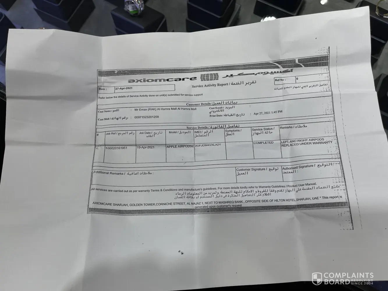 I bought AirPods in Ras Al Khaimah in the E Max store, they worked for me for two and a half months and stopped working, I could not hear it, I brought them to replace them so that they could be viewed for me why there is no sound 2 weeks have passed I came to me they were glued I have photos And They give them back to me, I did not take them back, because I was unhappy with how they were made the second A week later, they called me that they came with your airpods, I came back the same problem, how long will it last, I bought them not so that they would be for repairs, and in order to use them, I was told that there is no guarantee for them, how can this be, why then are they sold with a guarantee? or is it cheating? if they don't replace them then I will complain