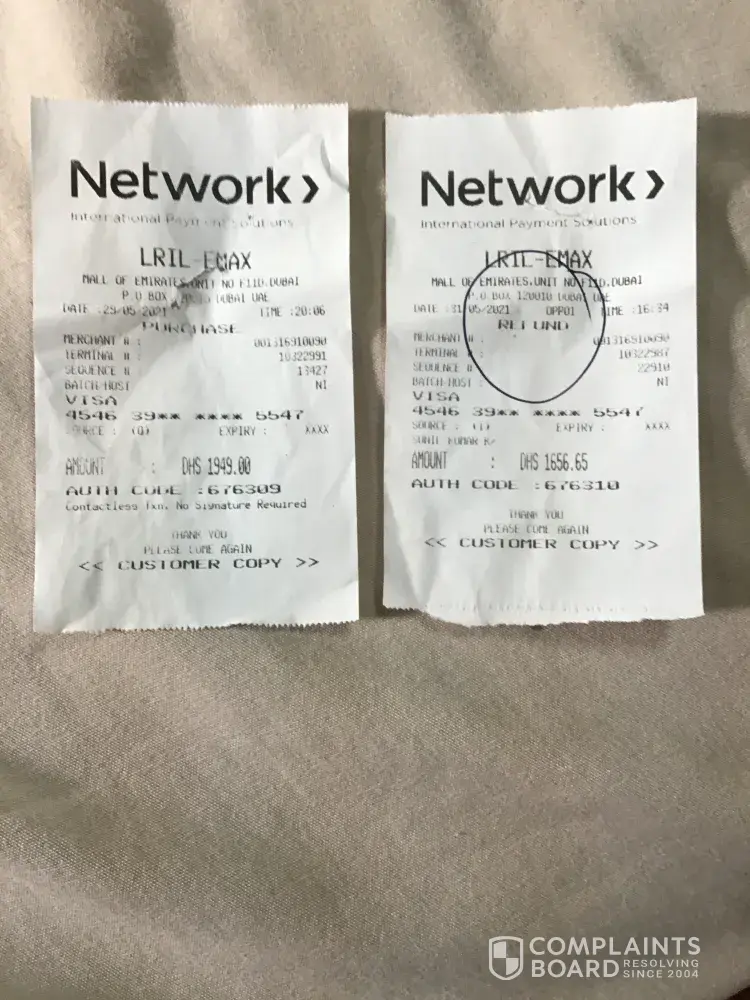 Please note I have purchased JBL5.1 sound bar system from emax showroom mall of emirates on 29/05/2021.When reached home and tested it was not up to the mark which shop had showed me and played at display unit .on 30/05/2021 I return the system as I am not happy with condition of system .shop supervisor not listening any thing when I replace the system he directly detected and 15% and returned to my credit card on 31/05/2021.Please give me new system at same price or refund my full amount asI did not used even a single day, your company says 7days return policy kindly consider this issue seriously .