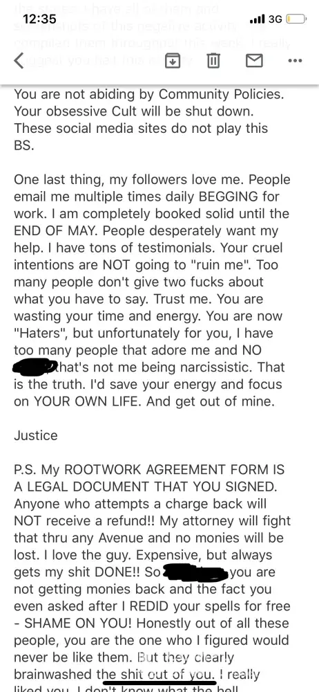 And you idiots defending her, she doesn’t know what she is doing. It’s a marketing scheme. Have fun throwing your money away. If you want to do magic just do laws of attraction you don’t need to pay some bimbo to do [censored] for you. Hell I’ll even give you advice on how to do your own spells for free you don’t need this fake woman.