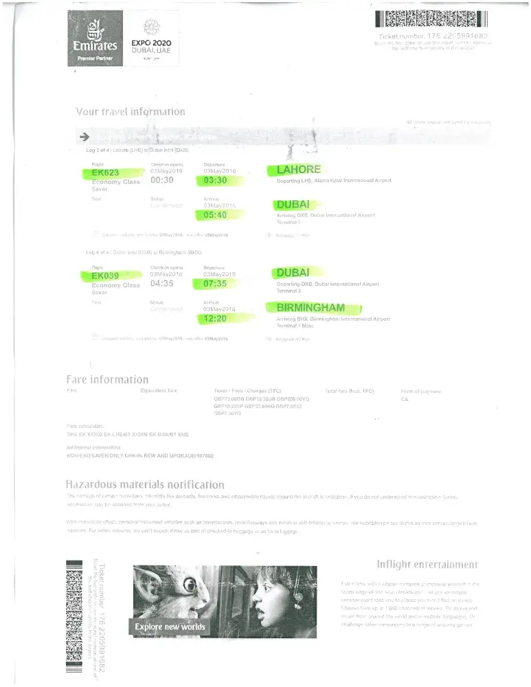 TICKET NUMBER: ETKTCOLOR/TYPE: BK22HWXTAG NUMBER: EK550671/Thanks Muhammad SaqibGSM: +[protected]